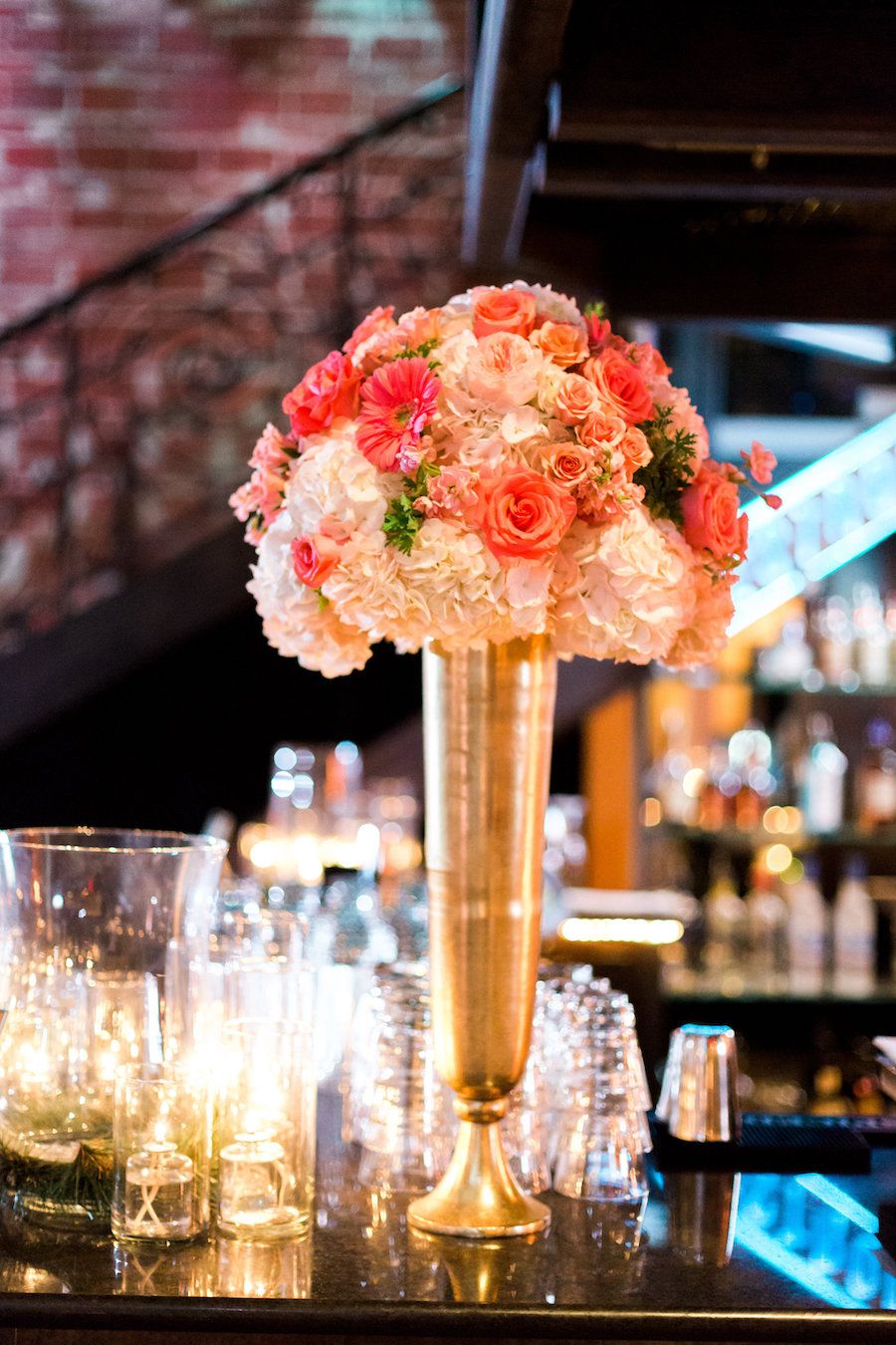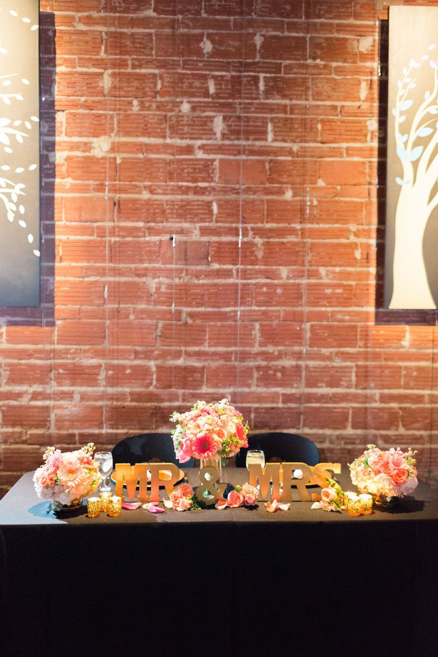 I love the way Chelsea and Dan utilized an elegant, simple design aesthetic, especially with their usage of the gorgeous, breathtaking flowers. We tried so hard when designing and building NOVA 535 to combine timeless elements; bricks, hardwood, glass, wrought iron and bamboo, creating a unique “blank canvas”. This canvas gives our clients the freedom and ease to enjoy NOVA as-is. Or as with Dan and Chelsea, to ability to add just the right personal touches, allowing their own personalities and creativity to really shine through.  Bravo to Chelsea and Dan for creating such a stunning look and feel for thier magical Black, Gold and Pink Downtown St. Petersburg Wedding. Congratulations and much love and thanks!!