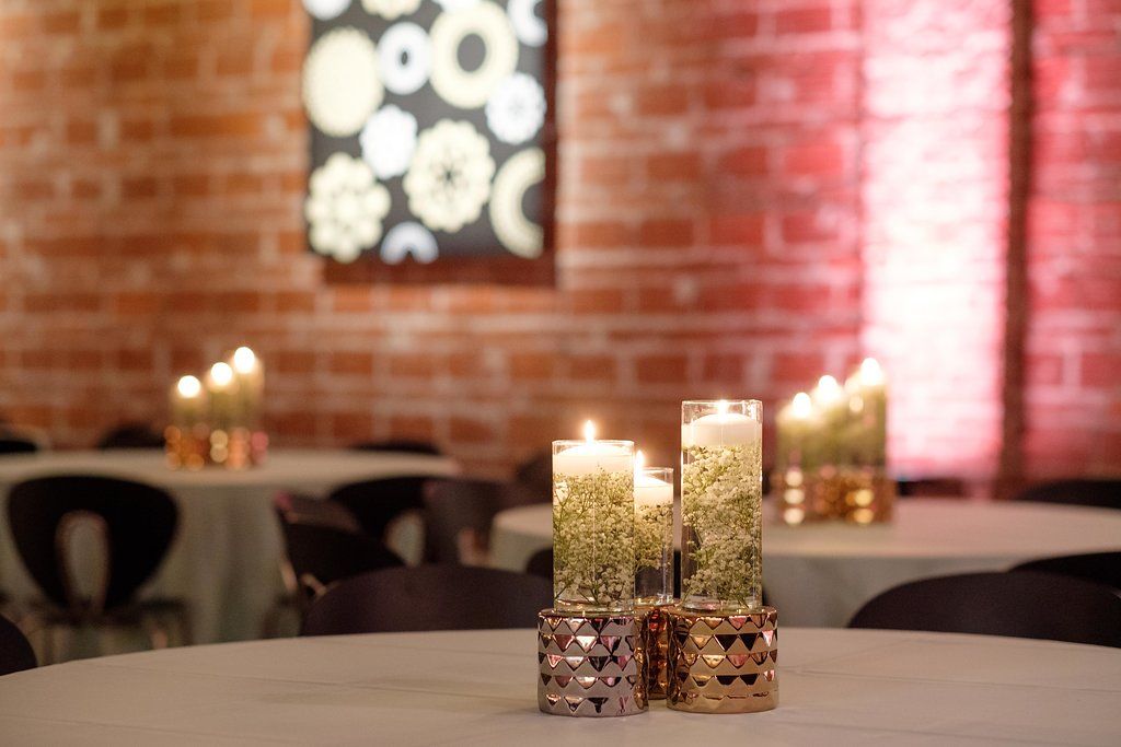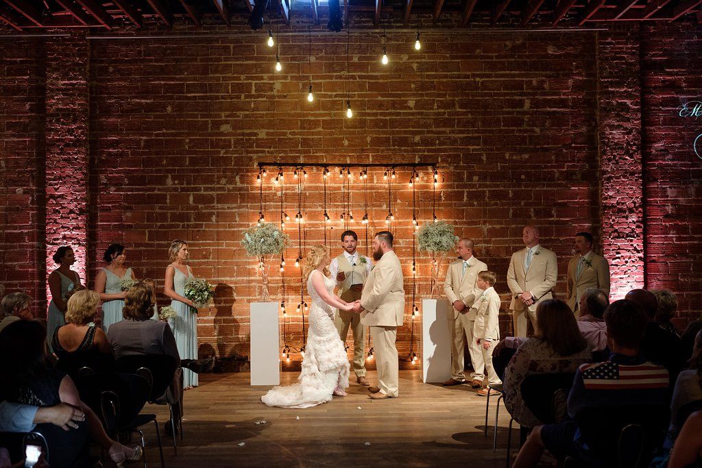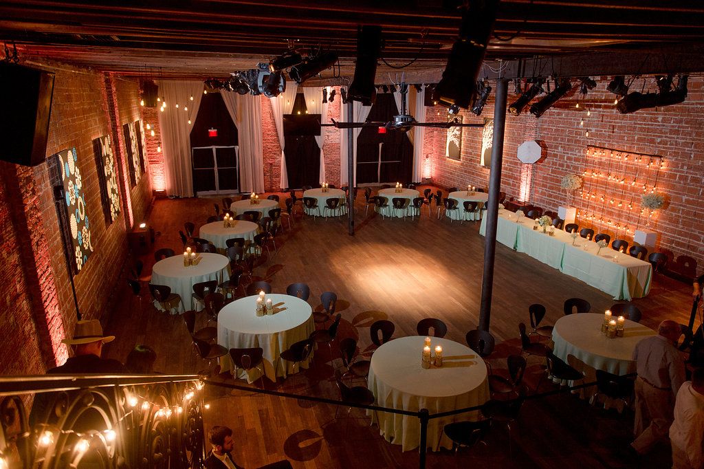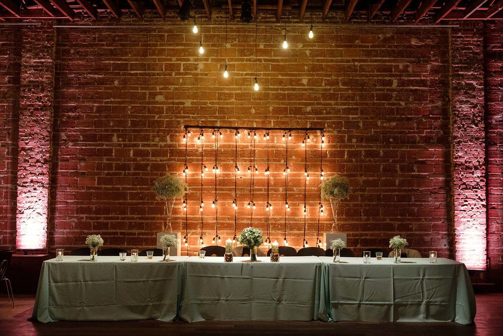 The iconic brick walls of NOVA 535 were the perfect backdrop for this bride and groom’s light summery wedding, making the seafoam green and khaki color palette really pop.