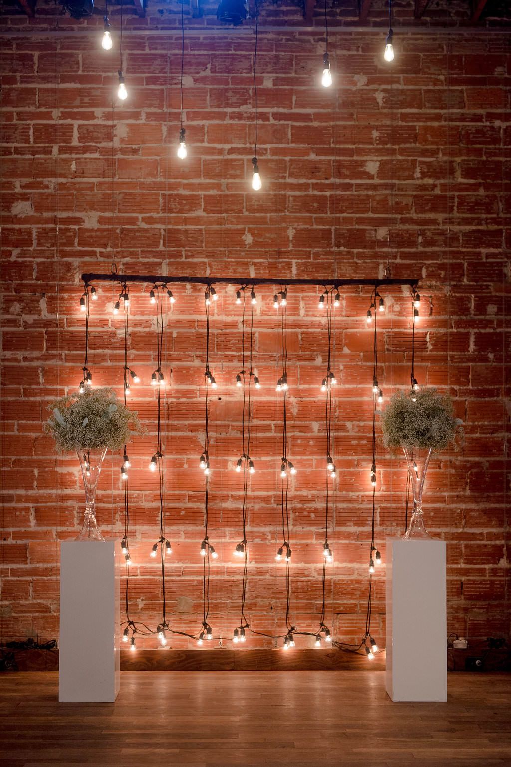 The couple chose downtown St. Pete wedding venue NOVA 535 for its open floor plan and modern decor. The hanging Edison string bulb light backdrop, paired with chic baby’s breath floral arrangements, made the perfect focal point for the bride and groom to say “I do”.