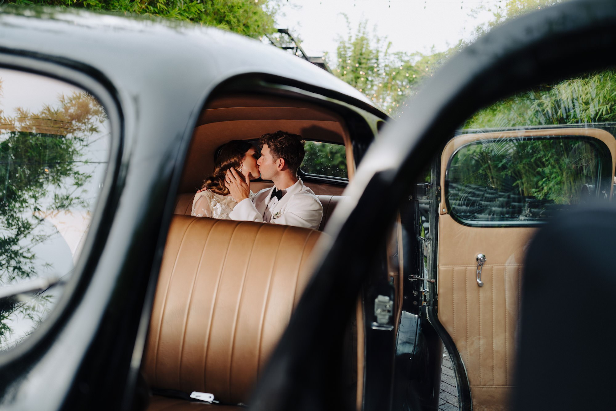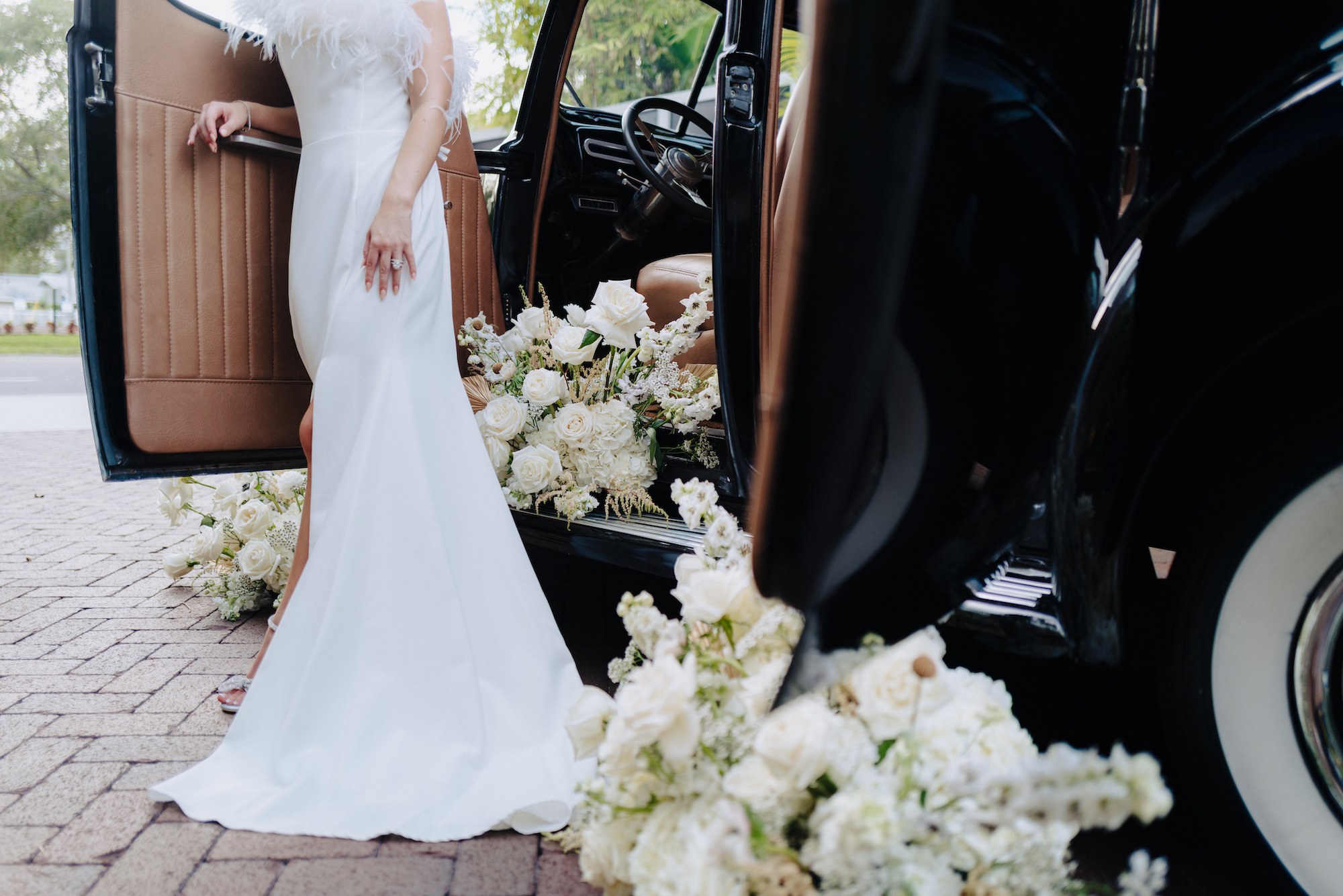 âI loved the feather dress from Truly Forever Bridal, the âRoaring Love’ light-up letters, the textured overlay linens from Kate Ryan Event Rentals, and the vintage getaway car really sealed the deal on our grand exit from Classically Ever After,â Kelci beamed.
