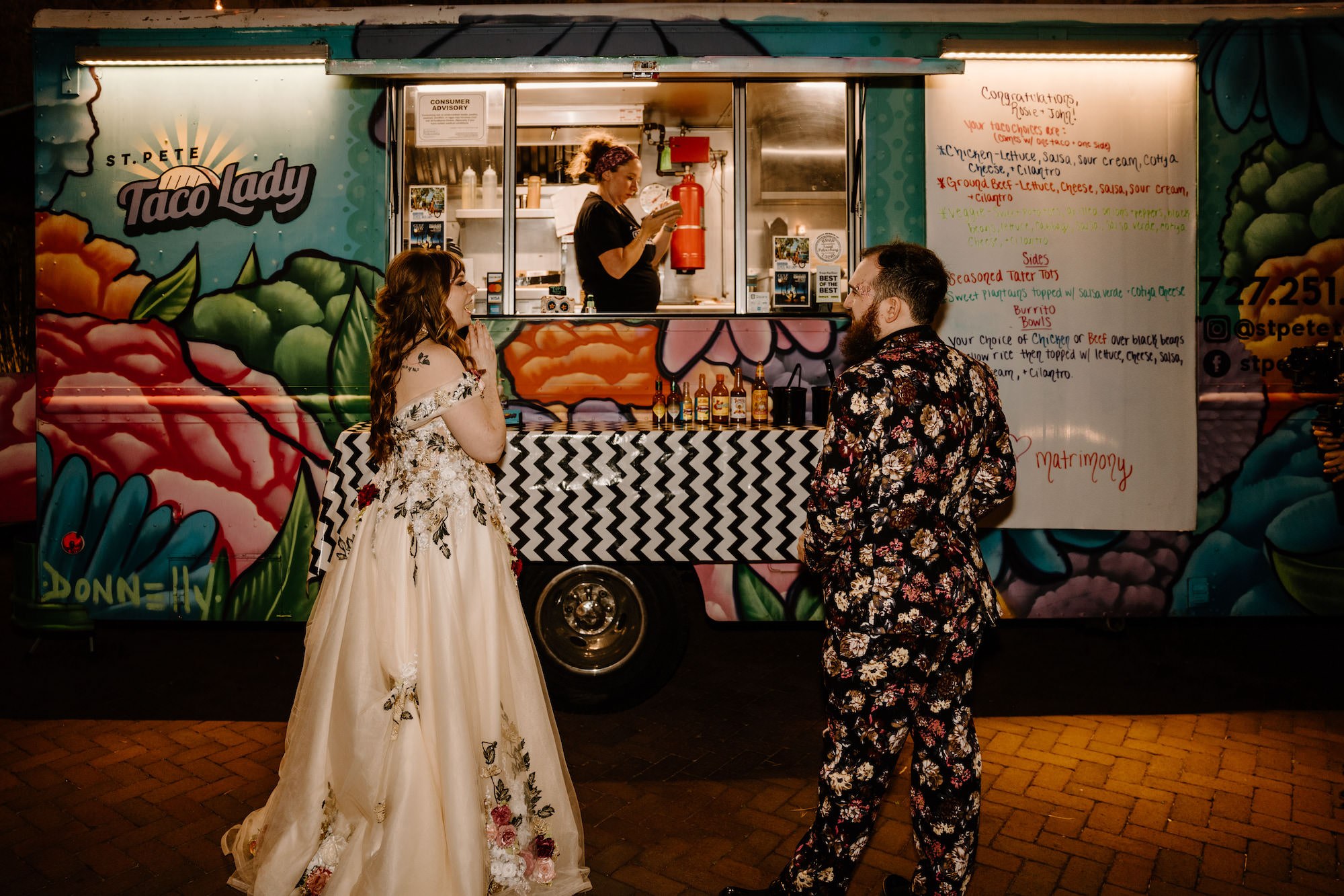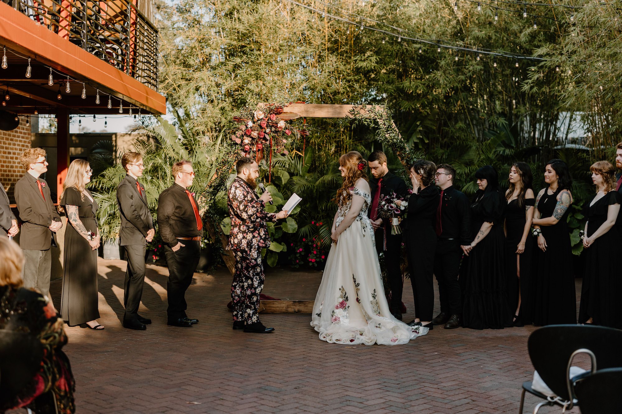 With a hard-rocker groom and a bride who defied convention with a harmonious blend of gothic allure, individuality, and punk-rock flair, Rosie and John’s downtown St. Pete wedding reflected the couple’s unique personalities.