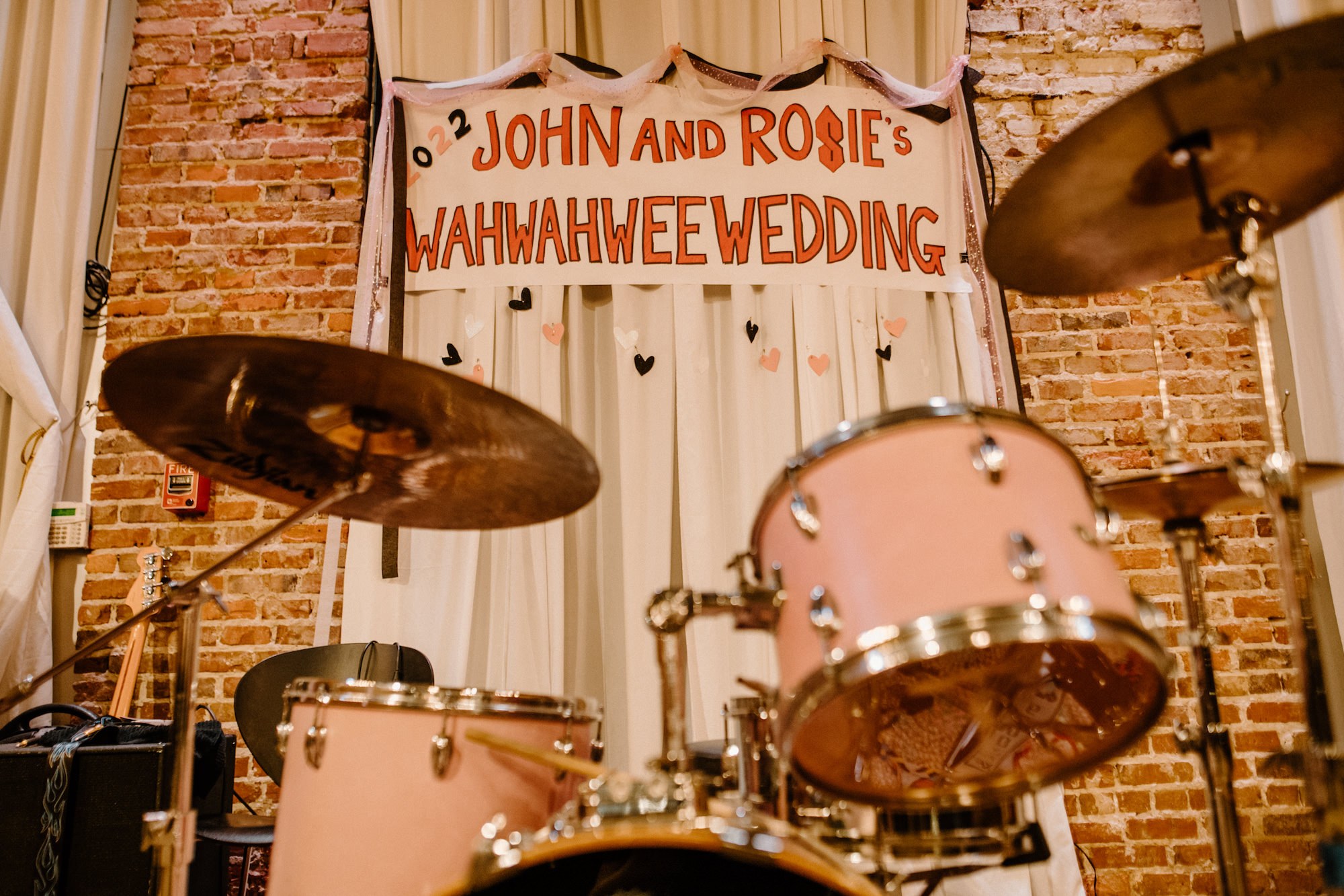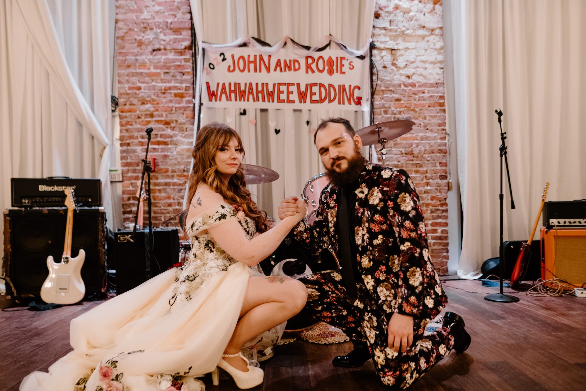 Inside NOVA 535, the original exposed brick wall, double iron rod staircase, and professional lighting perfectly complemented their punk-rocker vision for the reception. Taking the stage with their best friends in a cover band, they rocked out to meaningful emo songs from the 2000s, creating an unforgettable and authentic experience.