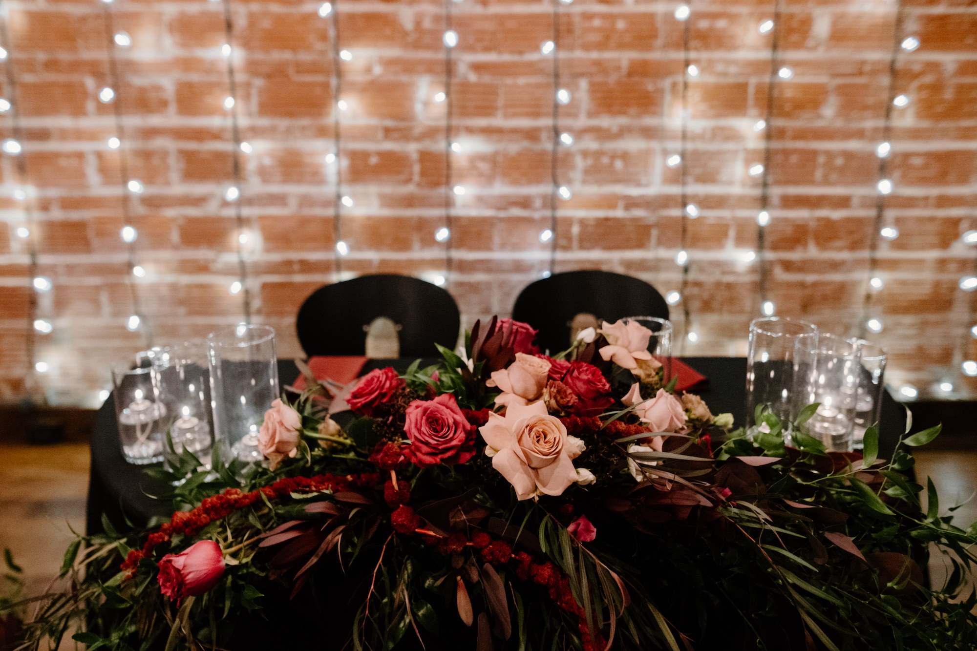 “We would describe our wedding as ‘grown-up goth,’ but our wedding planner told it much more elegantly in our initial meeting with her as ‘industrial, boho, moody, edgy, romantic’,” the bride revealed. “We made sure to go with a color scheme we both liked, darker colors that matched our styles: black, red, and blush pink tones. We chose those colors because they match our personal styles in our everyday goth life.”