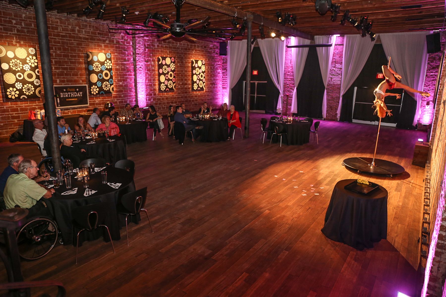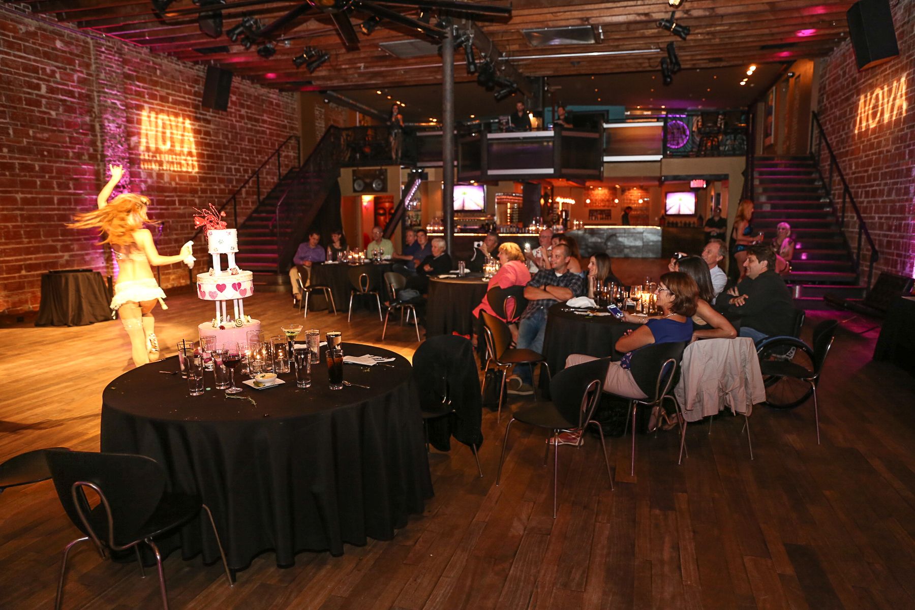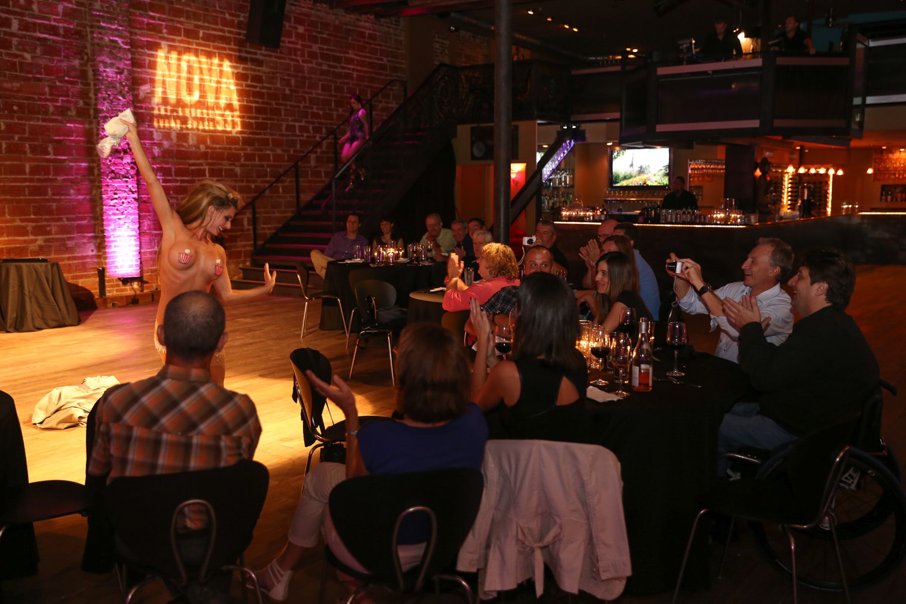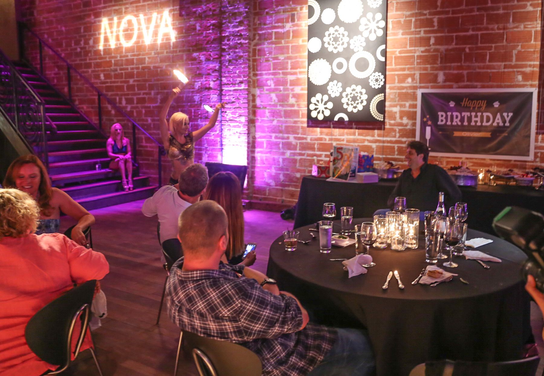 Entertainment. What’s a 50th birthday for a good looking, unmarried, globe trotting a guy without a gorgeous, exotically talented (1/2, err 3/4 naked) lady dancing around his birthday cake? That’d be not delighted. Here at NOVA we focus on wowing and delighting our clients’ and their guests. So we called local dancer, and burlesque star Katie James, once again, to bedazzle our birthday boy! Katie too has performed here many times, always leaving our guests wanting more!
