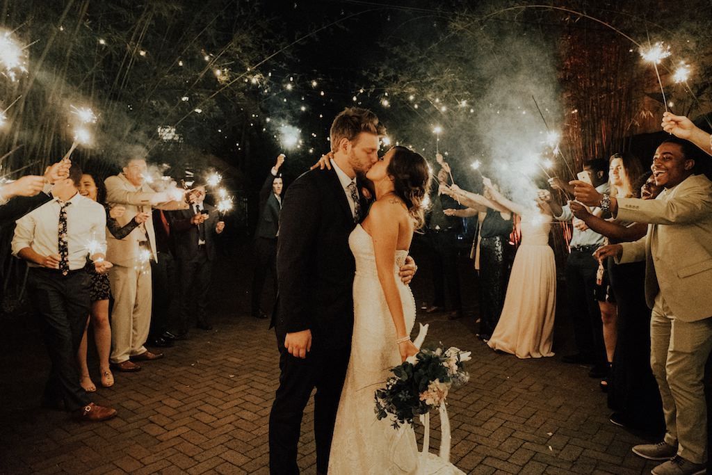 “We loved the bamboo garden and Edison bulbs for our ceremony and the stair cases inside for photographs!” the bride gushed. “The suites for the bride and groom upstairs were perfect! The bar was massive, which was a plus especially for our guest list. It literally checked off every box on our list.”