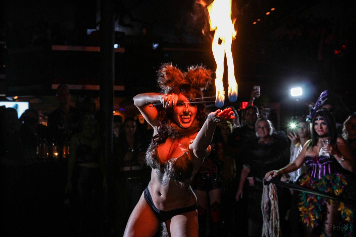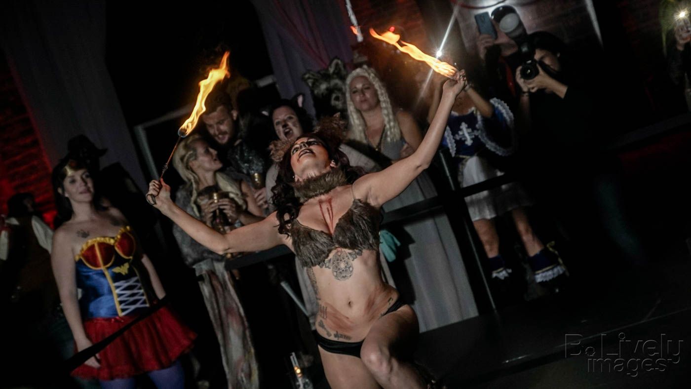Our gogo dancer Gemma Lux and aerialist Andrea Tirrella sent chills down everyone’s spine! The talent that these performers have developed over the years is mesmerizing and they both are such a delight to watch. Right before the costume contest, NOVAween veteran, Mayven Missbehavin heated us all up with her hot Hot HOT fire performance as the sexiest shewolf anyone has ever seen!