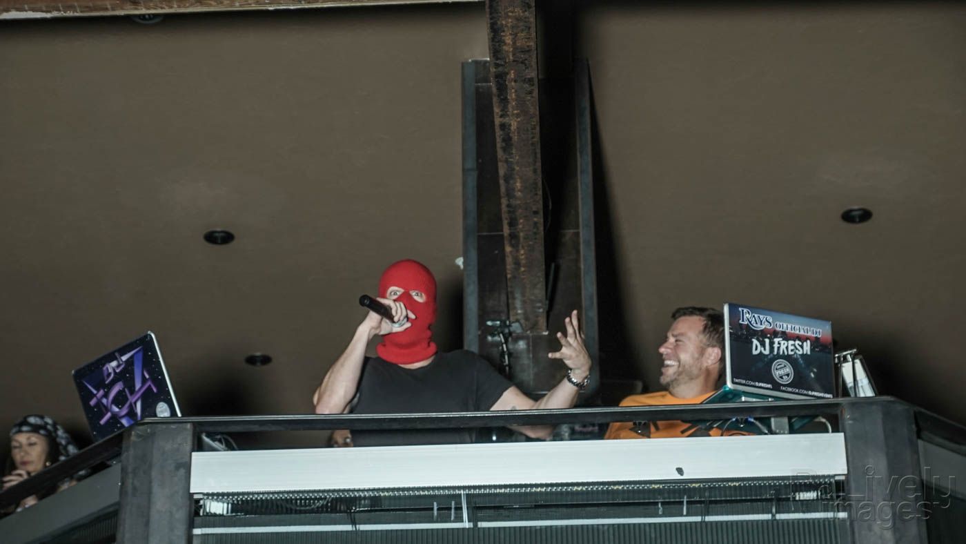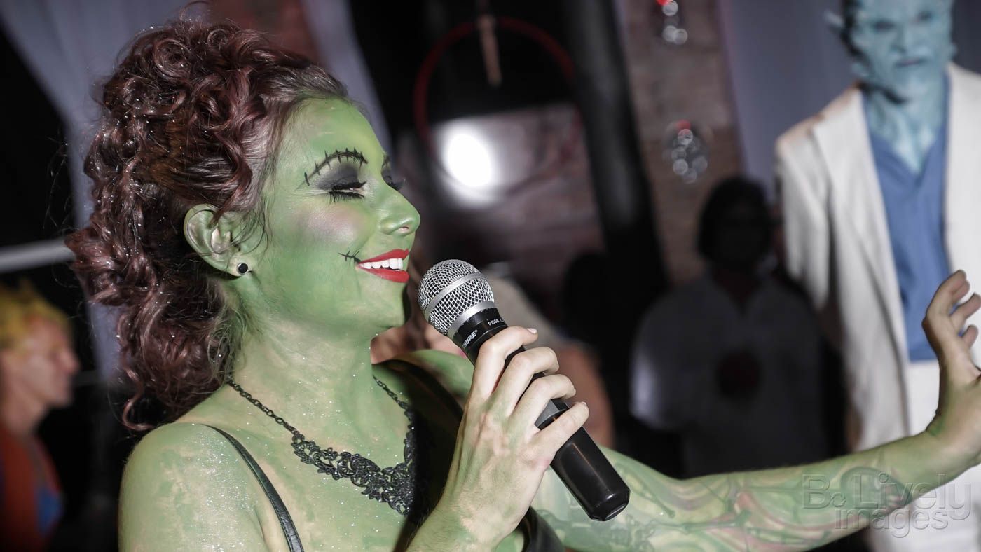 DJ Ich played the best dance music all night that kept the party going! Then DJ Fresh (the official DJ of The Tampa Bay Rays) arrived and hosted the costume contest with me (on-stage I’m Gypsy Allure, as green Frankie-Stein).