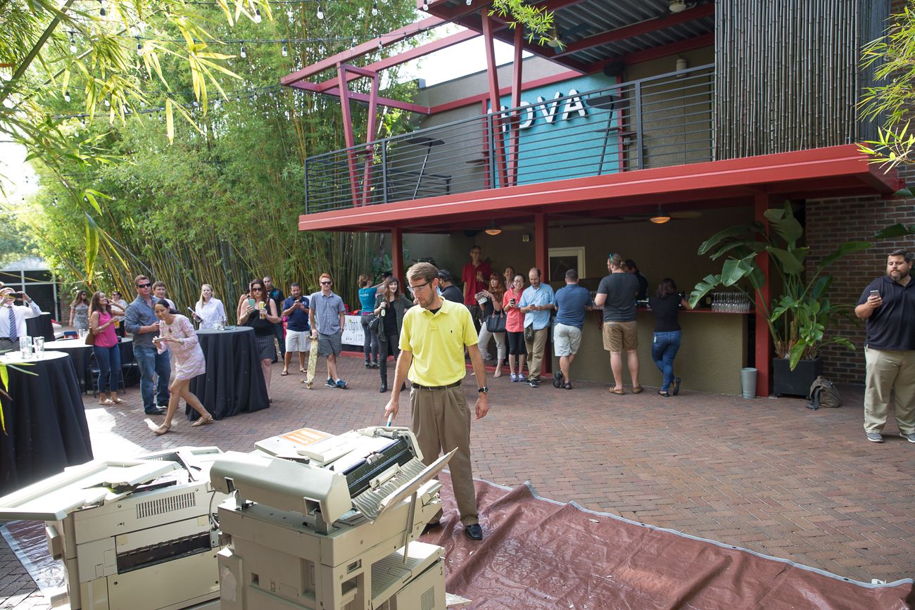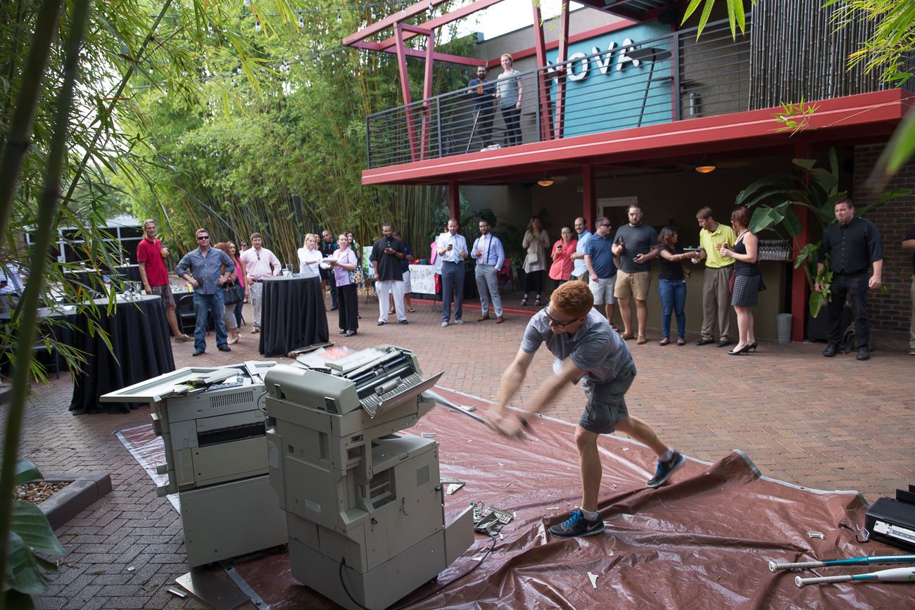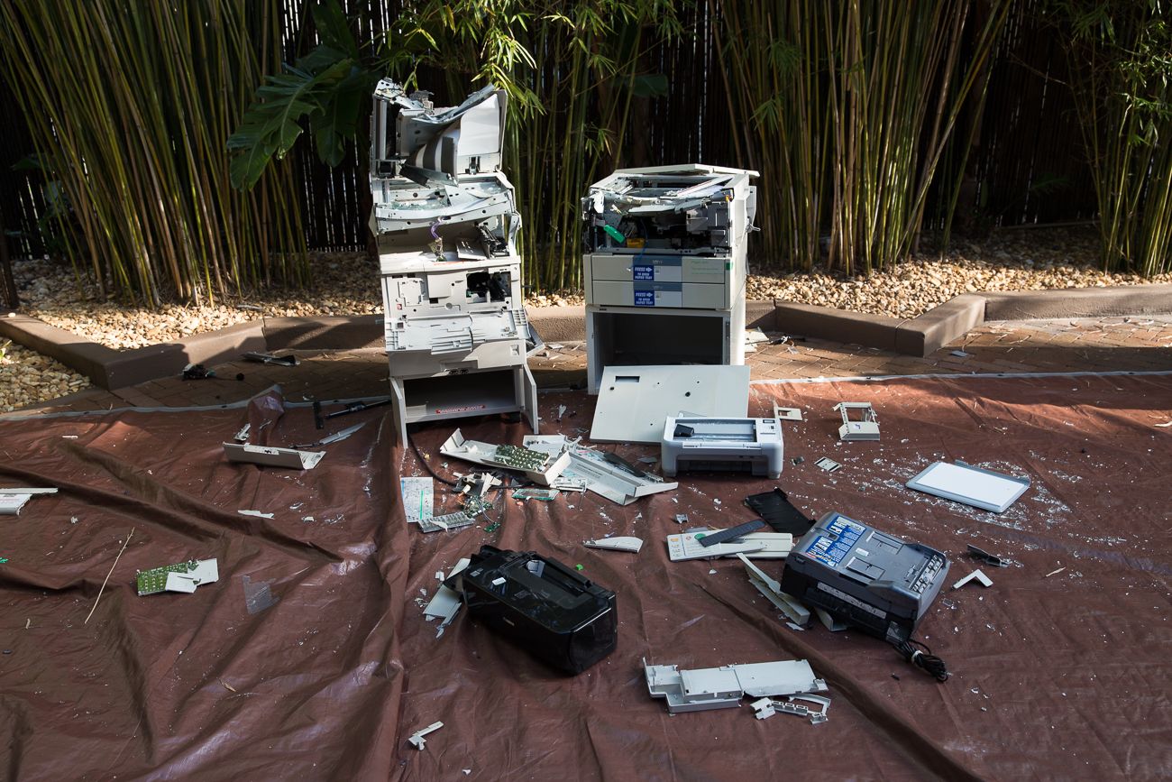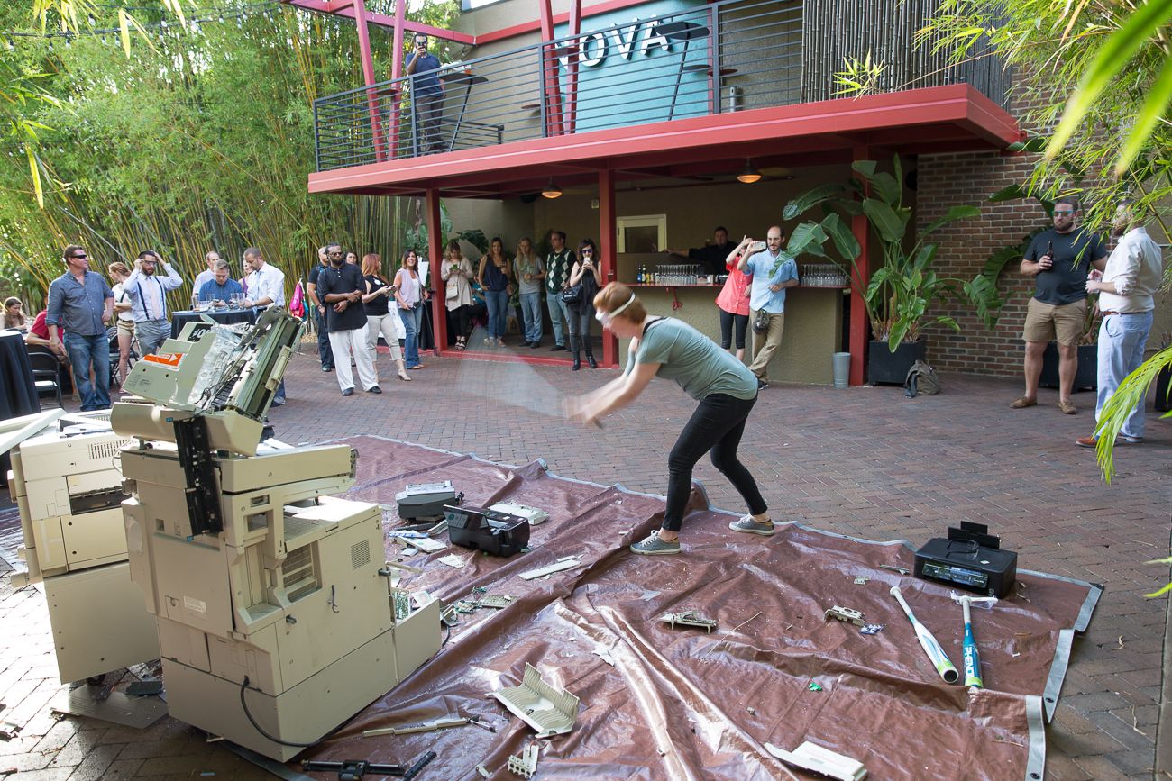 Seems that the Tech Smash was, haha, a “hit”. A special thanks to longtime friend and brother from another mother, Ed Pugliese, owner of Omni Copy, for bringing in those massive, virtually indestructible (they really took a beating, bravo!) copy machines. Thanks BIG ED! Below are some seriously big hitters..thanks guys and gals for the tech beat-down.