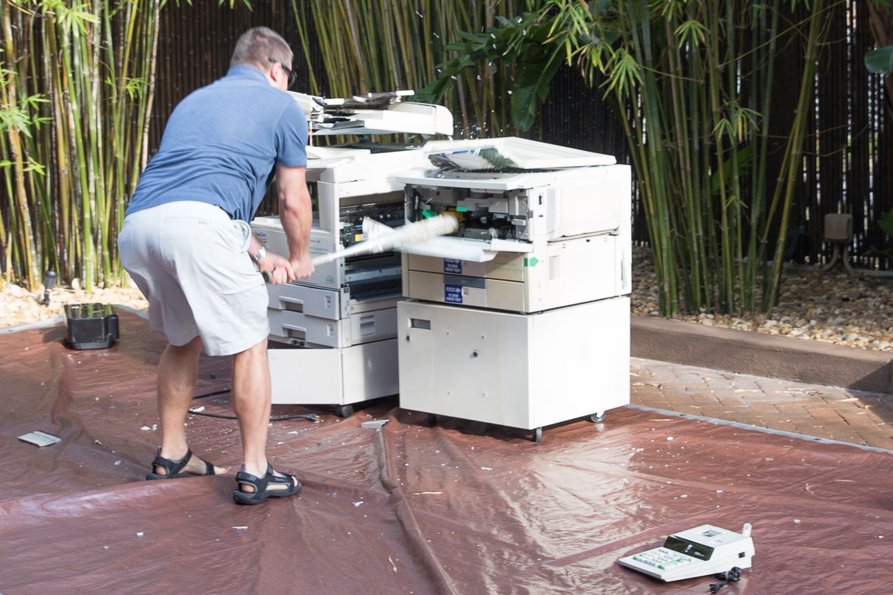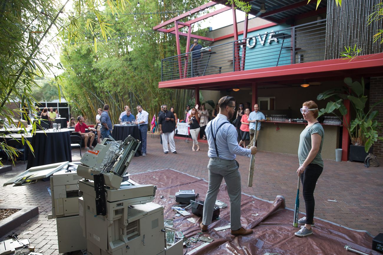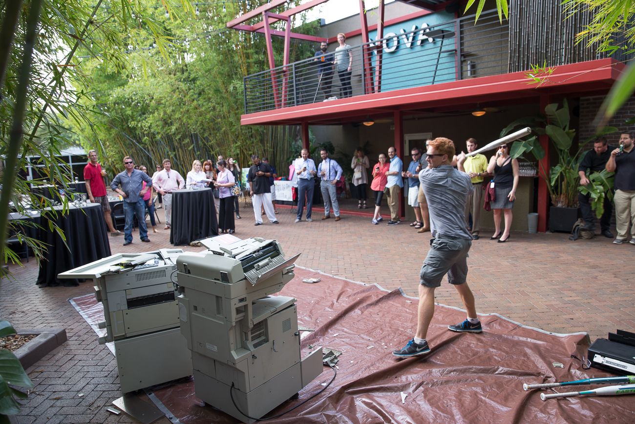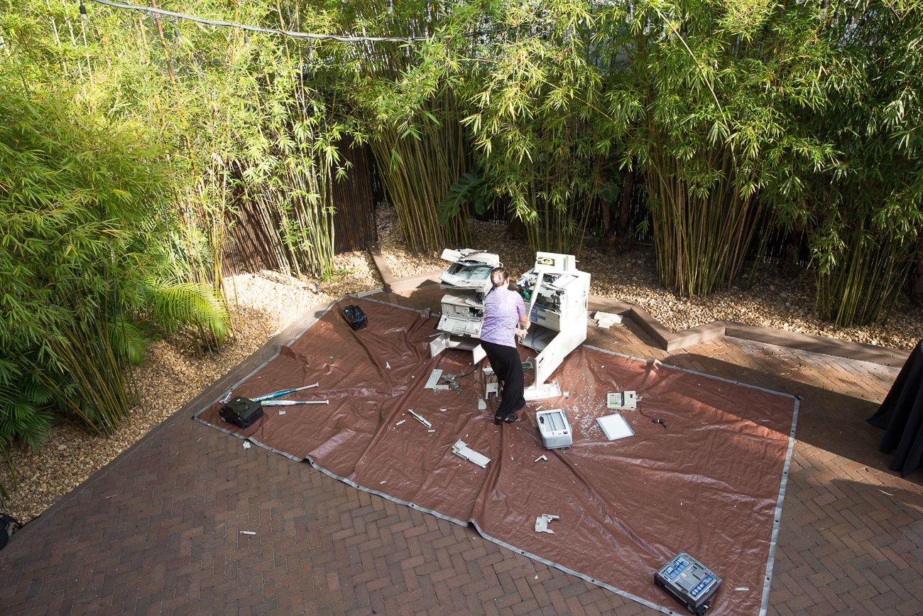 Seems that the Tech Smash was, haha, a “hit”. A special thanks to longtime friend and brother from another mother, Ed Pugliese, owner of Omni Copy, for bringing in those massive, virtually indestructible (they really took a beating, bravo!) copy machines. Thanks BIG ED! Below are some seriously big hitters..thanks guys and gals for the tech beat-down.
