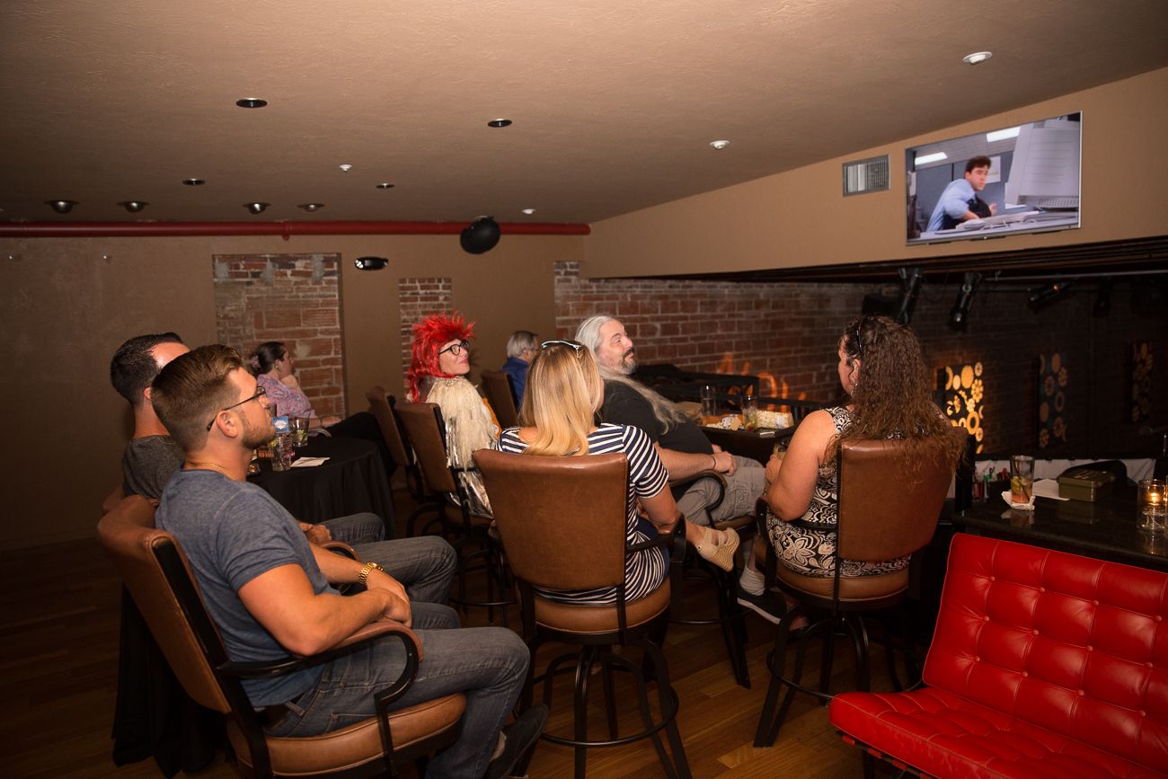 The movie itself is a classic, if you haven’t seen Office Space yet, do yourself the favor and watch it…and enjoy the tech smash scene! Below is some of our ESC members enjoying the film. Red head there is the delightful Marina Williams, owner of ArtPool. She’s here pimping her upcoming Bowie Fest – love ya Marina! And of course all us “Cool” kids were sitting upstairs in NOVA’s vip lounge.