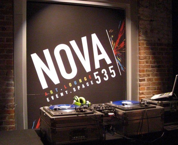 NOVA 535 Logo sign with DJ Booth July 10 2009