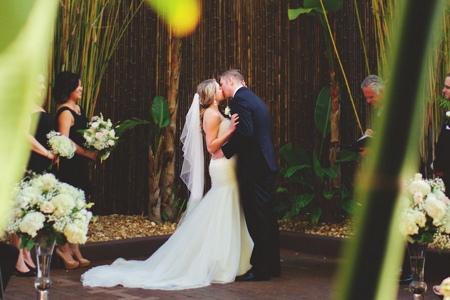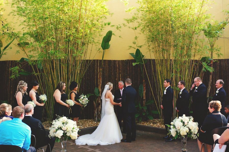 It was important for us to find a venue in our budget where we could hold all the wedding day activities in one place and that allowed us to still bring in our own vendors. NOVA 535 Unique Event Space was more than willing to accommodate our entire day from the getting ready suites, to the courtyard ceremony and indoor reception. Neither Mike and I are fans of hotel ballrooms with ugly carpet and bad lighting, and we did not want a beach wedding. We wanted to show our guests a different side of “Florida weddings” that matched our personalities: quirky and fun. After a very disappointing first venue that left me discouraged, NOVA 535 was our second venue visit. It was love at (second) sight!